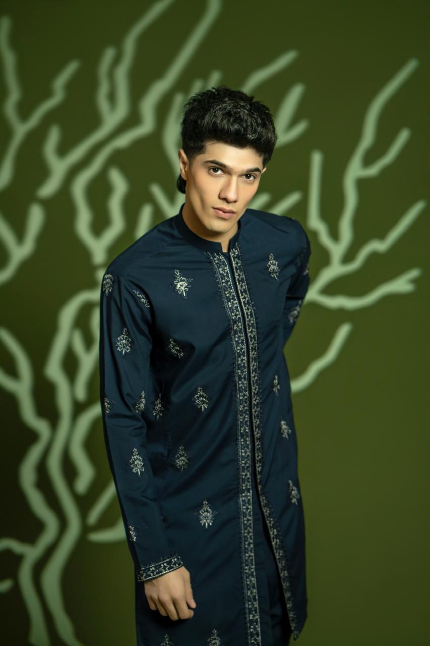 Embrace elegance and versatility with AR5172. This modern, front-open style features a blue wash & wear fabric with gorgeous embroidered details in blue and silver tila thread. This combination adds a touch of sophistication, making it suitable for both casual outings and festive occasions. With its relaxed yet chic vibe, this KURTA PAJAMA is perfect for any occasion.
