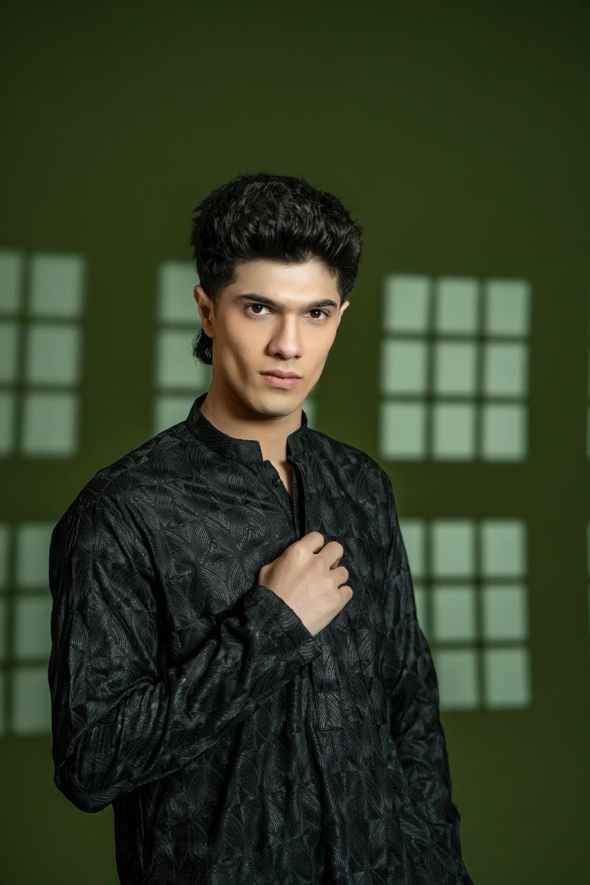 This outfit features an Black blended wash-and-wear fabric, making it practical and easy to maintain. The kurta is embroidered with matching color thread, adding subtle elegance while keeping the overall look cohesive.