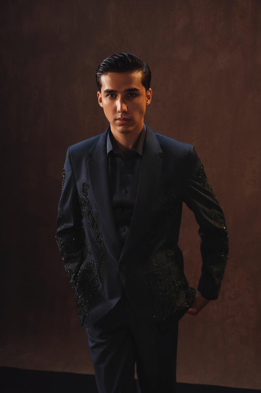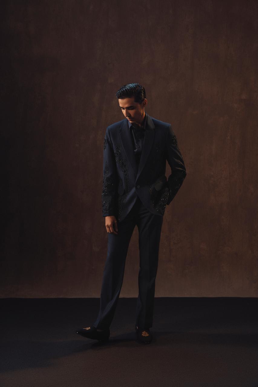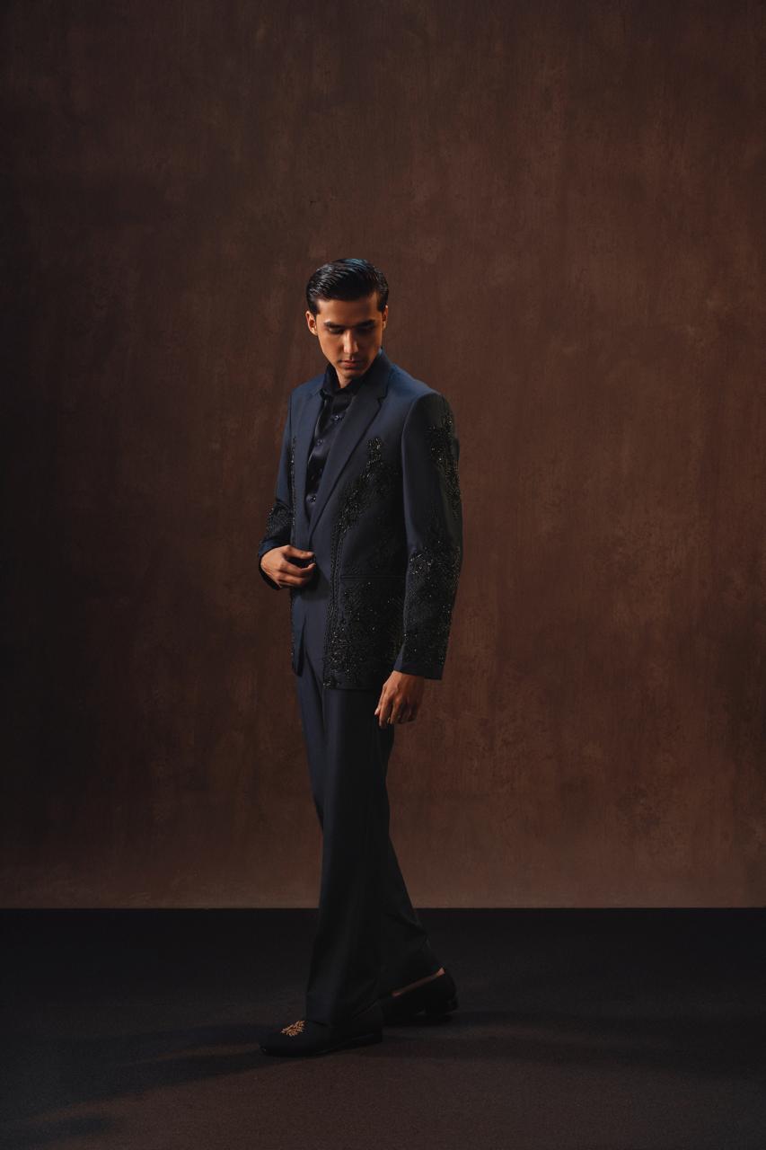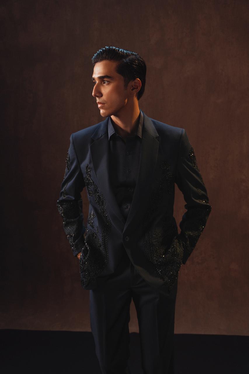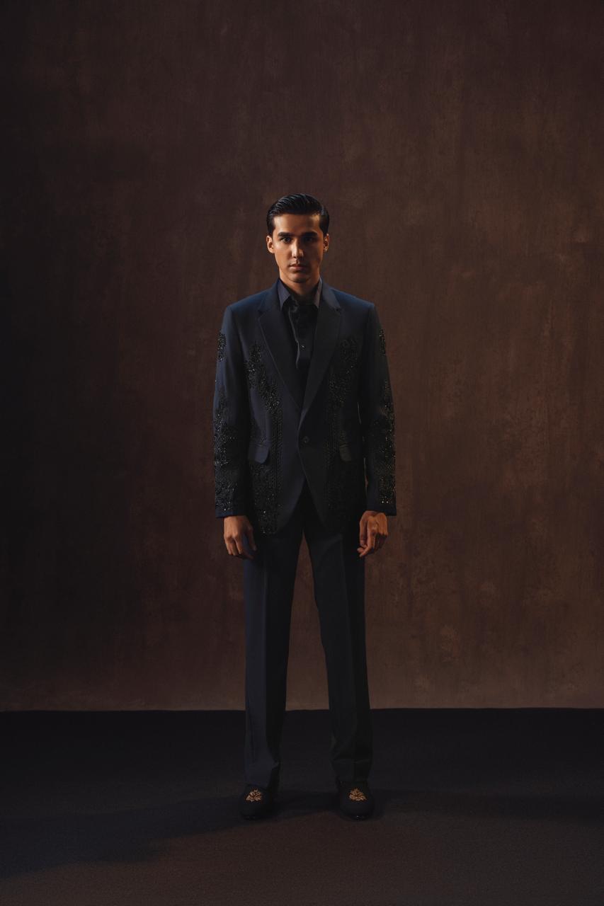 Crafted in a sleek modern cut, this 2-piece ensemble is embellished with cut daana and moti, adding a subtle shimmer that elevates its elegance.