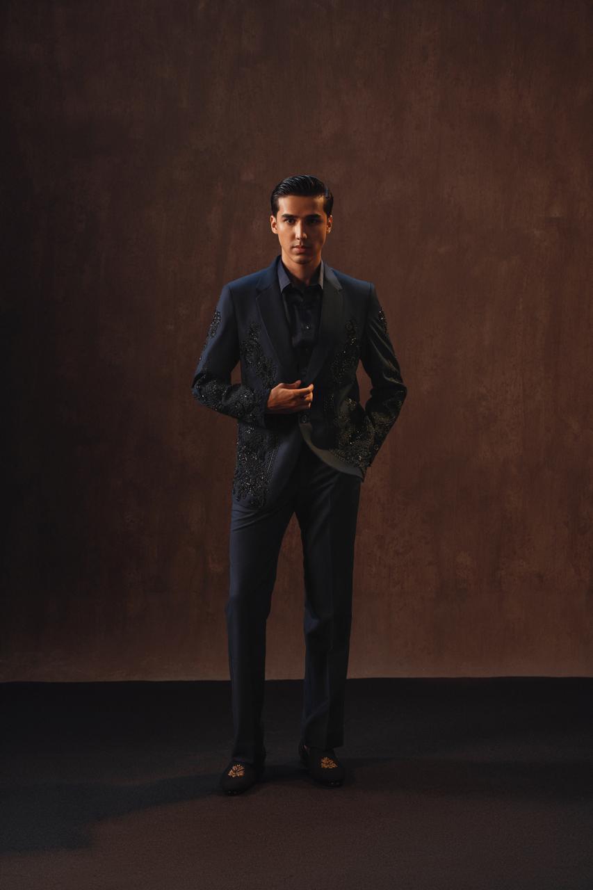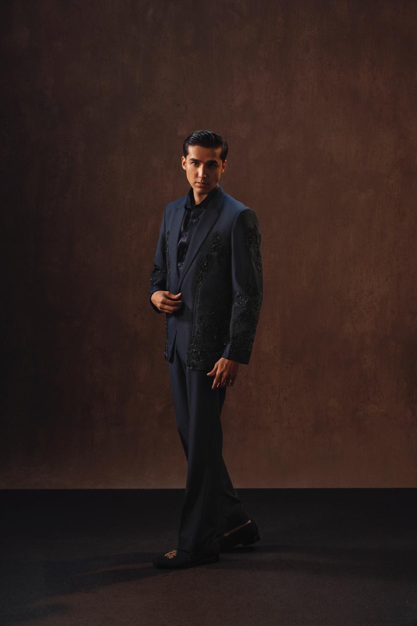 Blue Suiting Fabric 2-Piece Coat with Pants