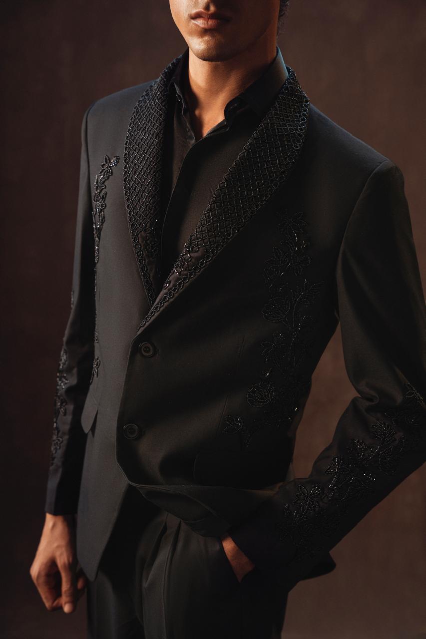 BLACK Suiting Fabric 2-Piece Coat with Pants