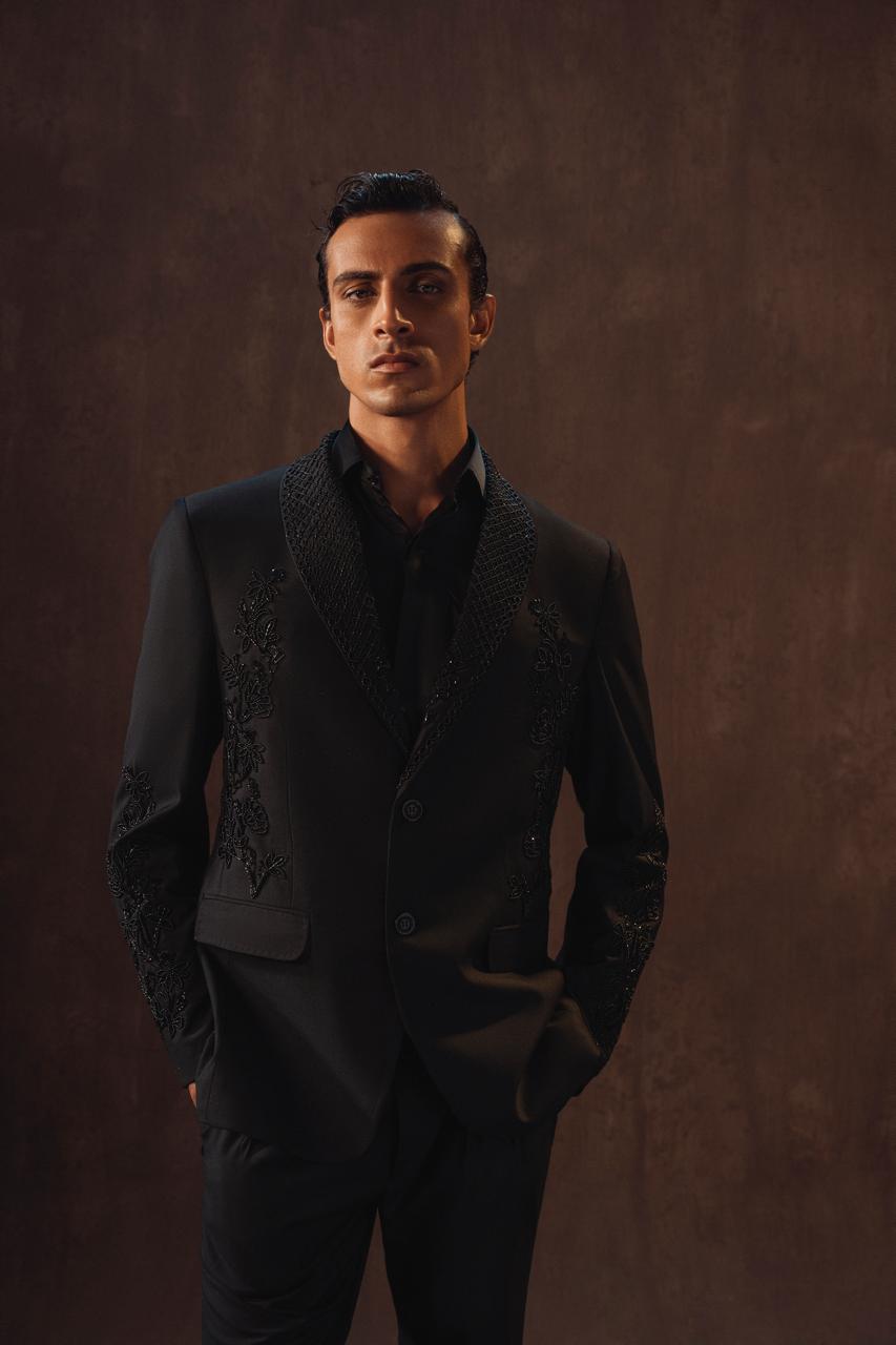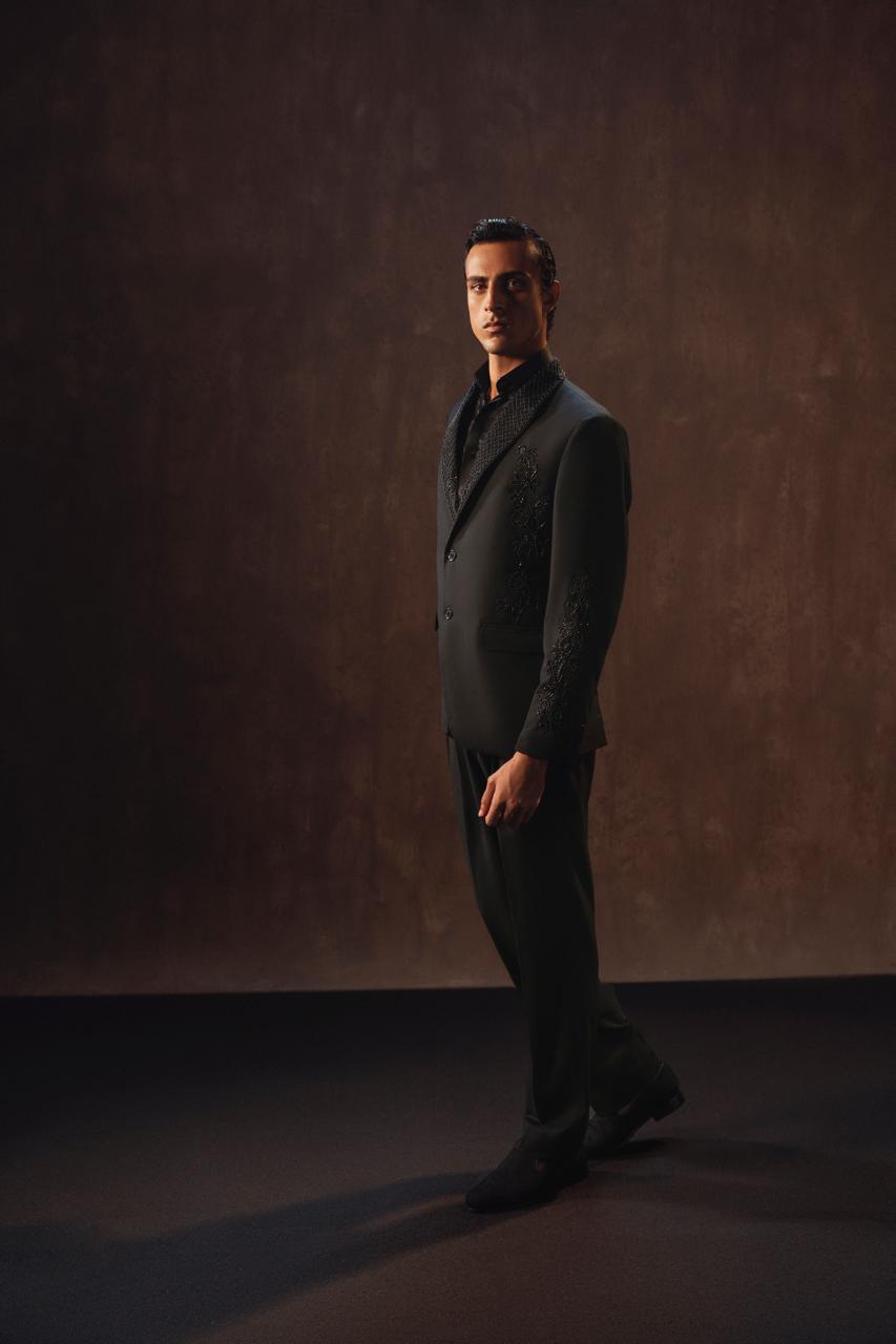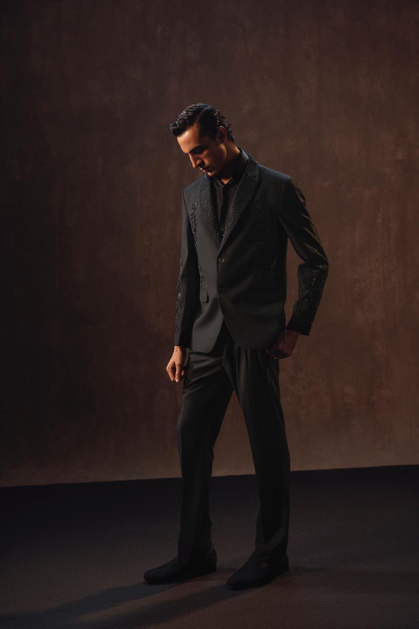 Crafted in a sleek modern cut, this 2-piece ensemble is embellished with cut daana and moti, adding a subtle shimmer that elevates its elegance.