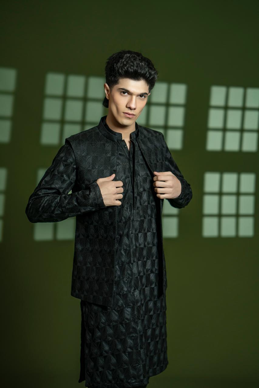 Designed in a modern style front open waitcoat , the kurta has a sleek and contemporary silhouette, often enhanced by unique button designs that elevate its appearance. It is paired with tailored trousers, creating a polished and sophisticated outfit suitable for various occasions, from festive celebrations to formal gatherings. The combination of comfort and style makes this ensemble a