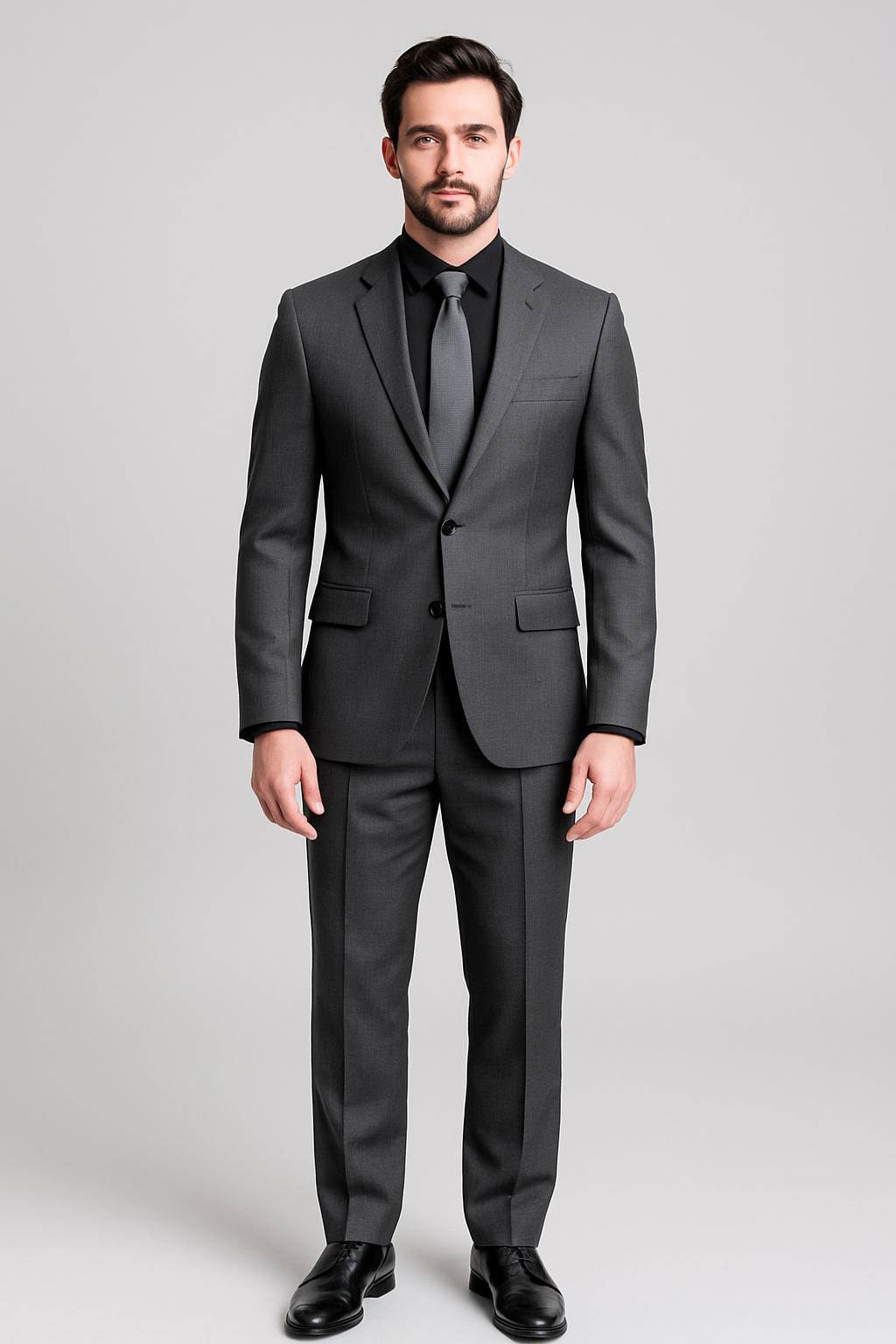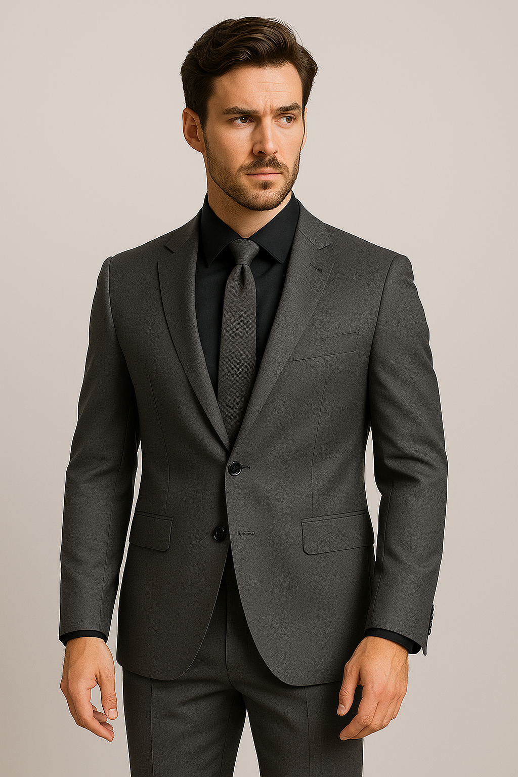 COAT : Single-breasted with two buttons, slim-fit style, featuring flap pockets and a chest pocket